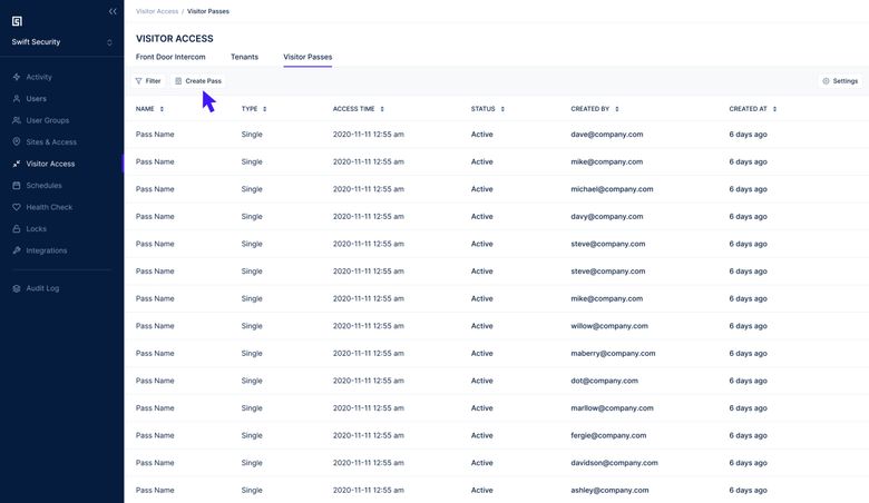 With Swiftlane, neither the property manager nor renter has to be restricted by scheduling conflicts. Prospective renters can give their availability, and property managers can generate a secure, single-use PIN code during that time. The renter can then gain access to the apartment building using the code to take a self-guided tour for the allotted time. The property manager generates this code from the admin dashboard remotely and does not have to make a trip to the property.
