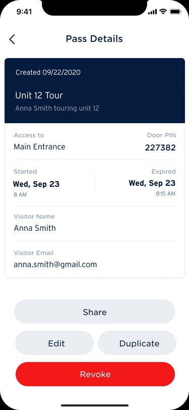 - Generate a unique single-use PIN code. To create this pass code, fill in the details of the contactless tour and designate the appropriate door for which access should be granted. Then, schedule the PIN to grant access during the time the prospective renter would like to tour the apartment. Scheduling and restricting time windows ensures access to the building is not leaked.